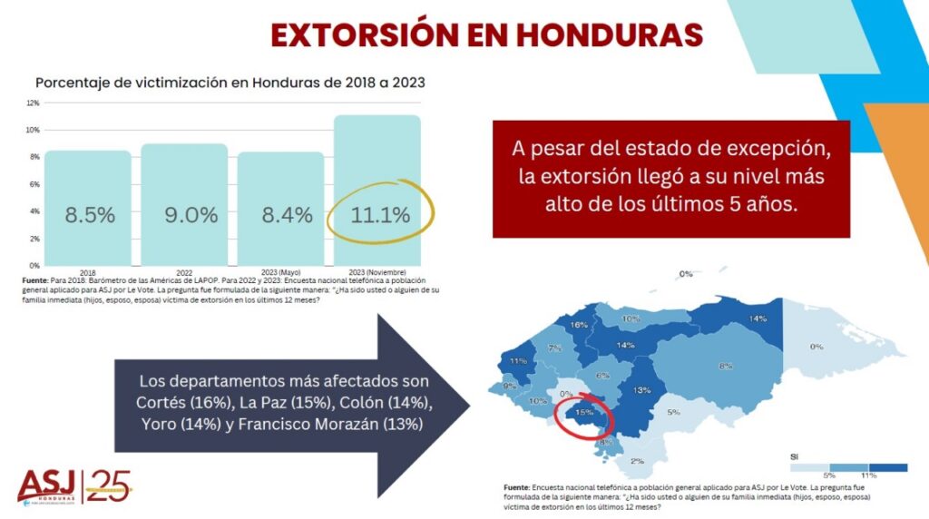 Extorsión incrementó al nivel más alto en cinco años, con 11.1 % de hondureños afectados en 2023: informe de ASJ