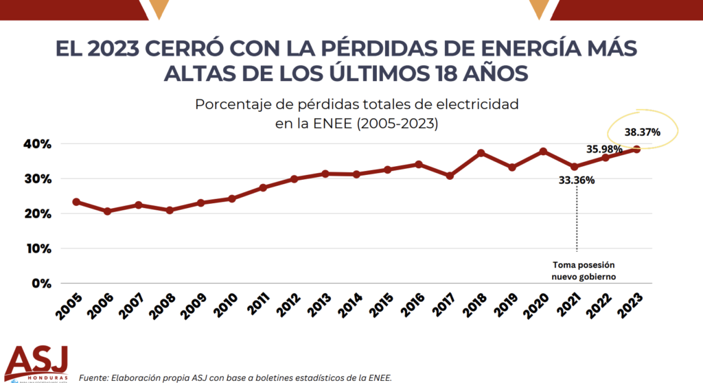 Desde la sociedad civil organizada, ASJ ha señalado la necesidad de revertir las millonarias pérdidas de energía que hoy representan un agujero negro en las finanzas del Estado hondureño, que sigue destinando importantes fondos que podrían invertirse en salud, educación y seguridad en beneficio de la población más vulnerable.