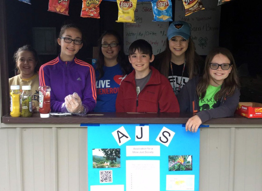 Erin y otros siete jovencitos que empezaron recientemente su sexto grado, colocaron un pequeño stand para vender pizza, hot dogs, agua, café, refrescos, donas y otras golosinas, con lo cual recolectaron algunos fondos que remitieron a la Association for a More Just Society (AJS), organización hermana de ASJ en Estados Unidos.