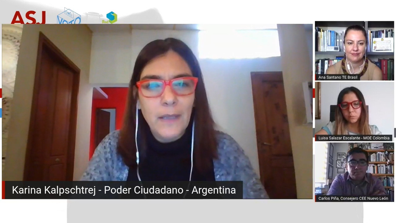 El foro virtual contó con la participación de expertos internacionales en la materia, como Ana Claudia Santano, miembro de Transparencia Electoral, Brasil; Luisa Salazar, oficial de género del Observatorio de Género: Mujer, Poder, Política de la Misión de Observación Electoral de Colombia; Carlos Piña, Consejero Electoral del Estado de Nuevo León, México y Karina Kalpschtrej representante de Poder Ciudadano de Argentina y quien moderó el conversatorio.