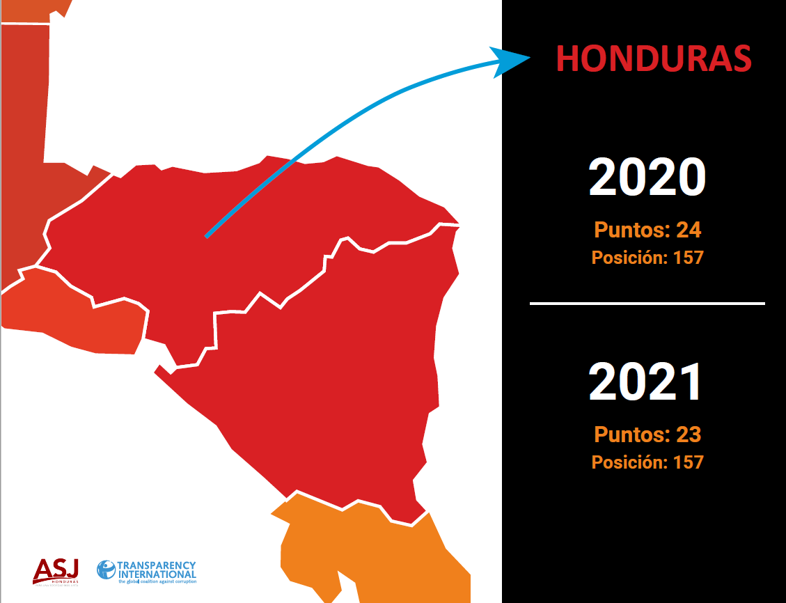 La clasificación, en una escala de cero (muy corruptos) a cien (muy limpios), establece en su edición 2021 que la puntuación media global se mantiene en 43 puntos por décimo año consecutivo y dos tercios de los países no llegan a 50. En el caso de Honduras, desciende a 23 puntos (24 en 2020) y se ubica en la posición 157 de 180, igual que el año anterior.