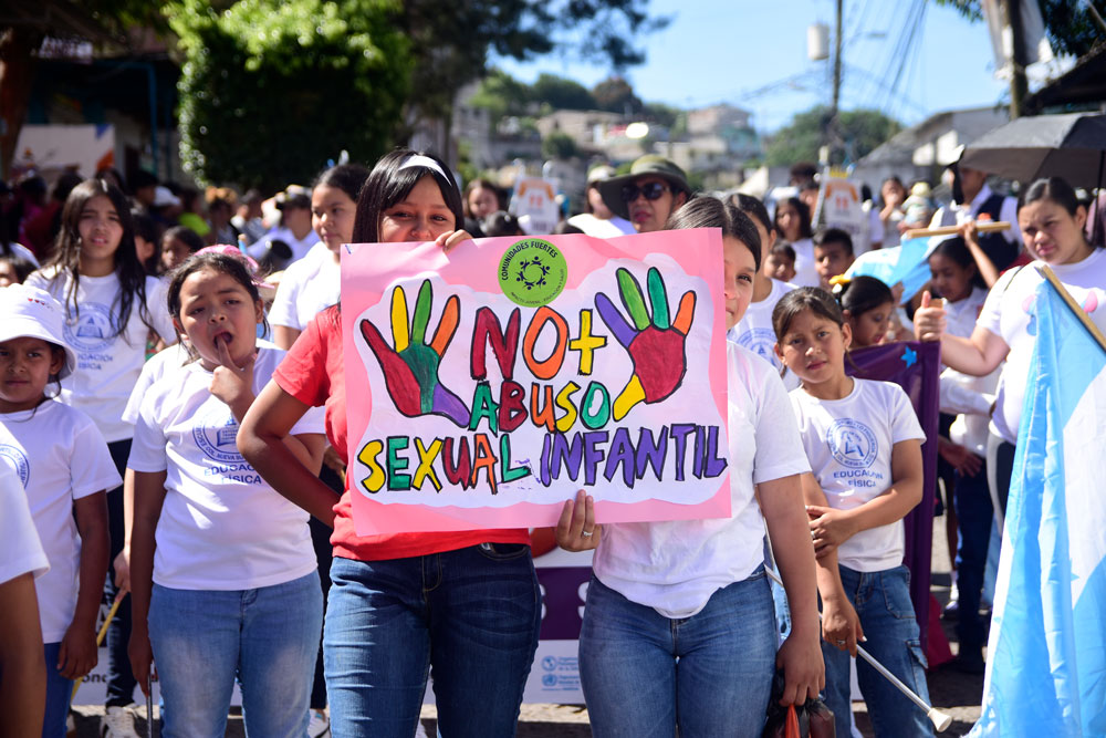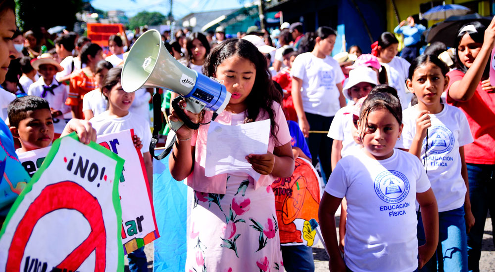 Niños de las escuelas Pablo Portillo y 17 de Septiembre, jóvenes de clubes comunitarios, familias y líderes de distintos sectores se unieron para recordar que la protección y prevención de la violencia contra la niñez debe ser prioritarias.
