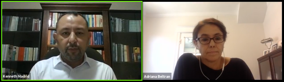 El webinar contó con la participación de Adriana Beltrán, directora para Seguridad Ciudadana de la Oficina en Washington para Asuntos Latinoamericanos (WOLA, por sus siglas en inglés), y Steve Dudley, periodista y codirector de Insight Crime; con la moderación de Kenneth Madrid, director de Seguridad y Justicia de ASJ.