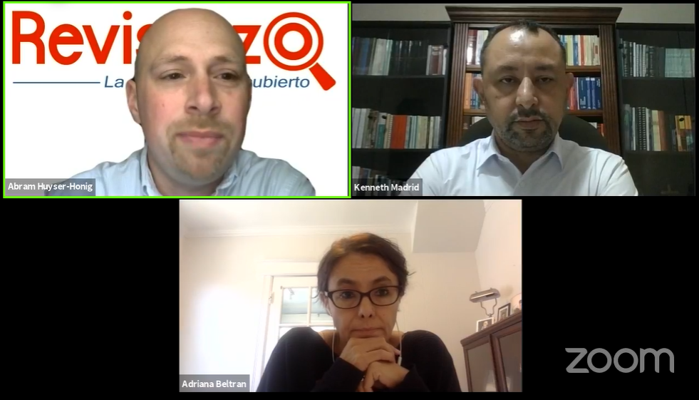 El webinar contó con la participación de Adriana Beltrán, directora para Seguridad Ciudadana de la Oficina en Washington para Asuntos Latinoamericanos (WOLA, por sus siglas en inglés), y Steve Dudley, periodista y codirector de Insight Crime; con la moderación de Kenneth Madrid, director de Seguridad y Justicia de ASJ.